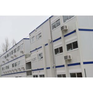 Een kleedkamer zonder sanitair is vaak minder praktisch. Daarom kan Kloos Container u ook een geprefabriceerd gebouw met douche en toilet aanbieden. De douches kunnen naar wens worden gescheiden in aparte cabines. De vloer kan ook worden betegeld, waarbij de sanitaire voorzieningen geïsoleerd en waterdicht zijn.