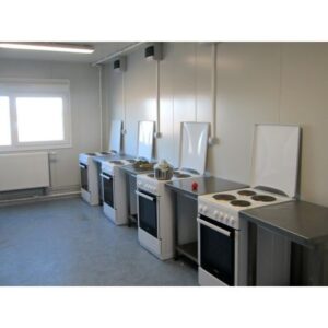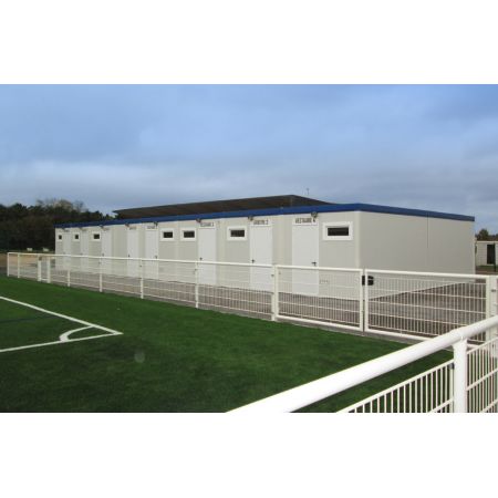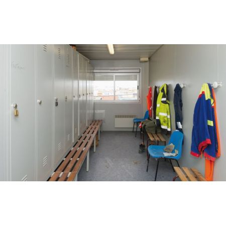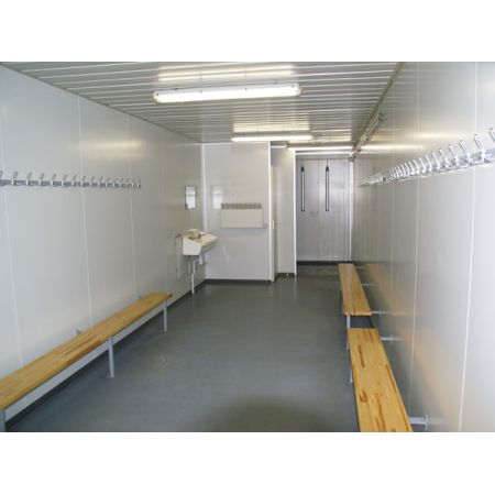Voor een kleine sportclub is een geprefabriceerde module uit één stuk voldoende. Deze is echter, net als elke kleedkamer, voorzien van banken en lockers voor het opbergen van de spullen van sporters.